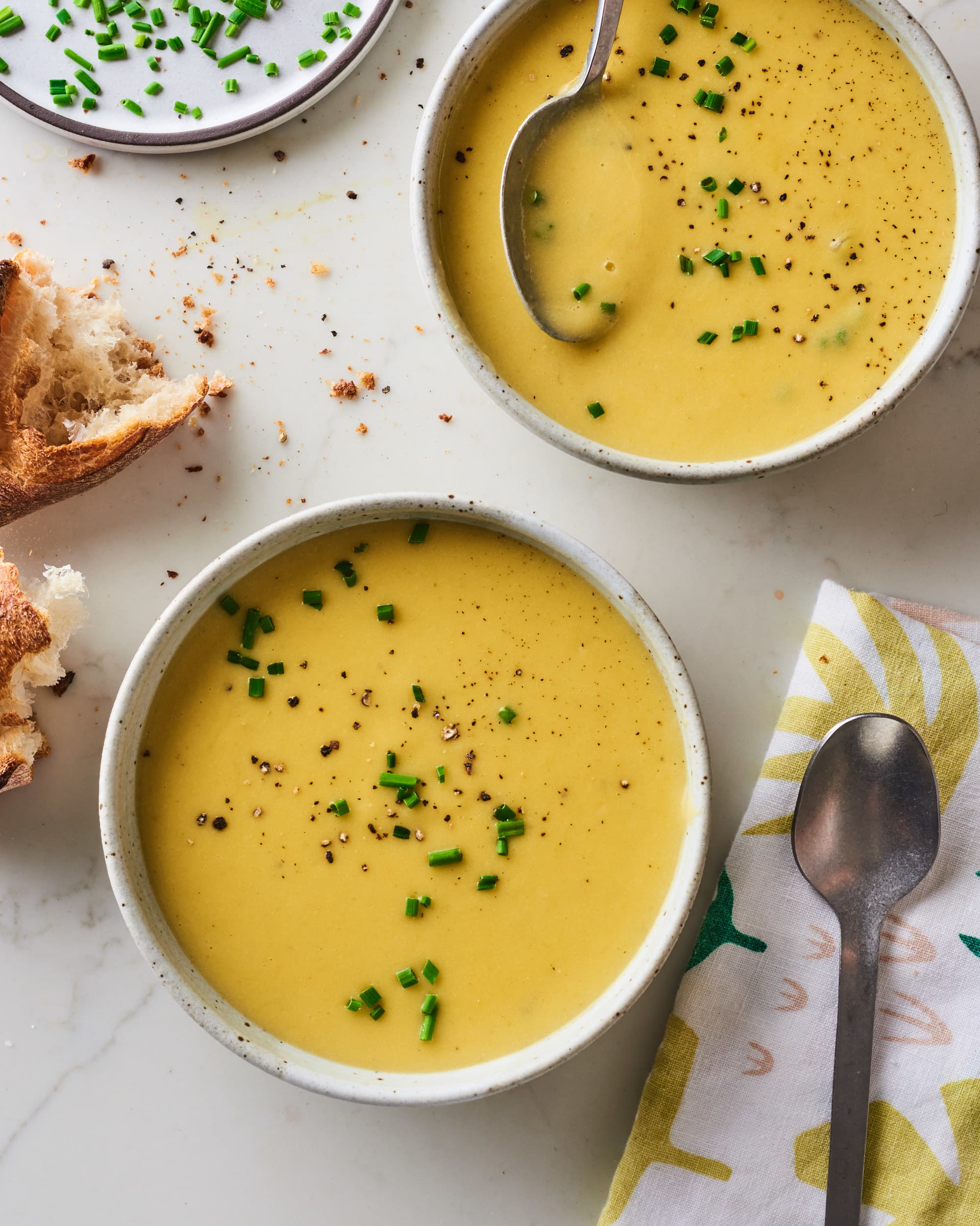 This soup tastes even better, if you can imagine that, heated up the next day. The recipe yields two thick and moist loaves, perfect for making grilled cheese sandwiches, buttering for your breakfast toast, or soaking up the sauces of meatballs, stews, or pulled pork. But russets or red potatoes would also do. Add liquid to blender and add 2 cups of potatoes and puree until smooth. (the soup may be served as a rustic country soup at this point, but it is even better when it is pureed.) in a blender, puree the soup in small batches.